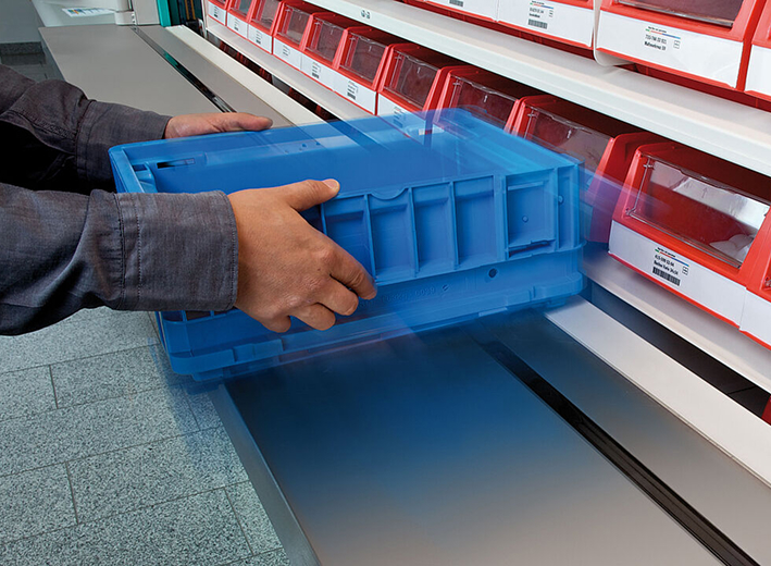O Hänel Rotomat é também uma excelente escolha para armazenagem em condições técnicas específicas, como áreas limpas, climatizadas ou com restrições de acesso. A sua estrutura fechada protege os materiais armazenados e assegura a conformidade com normas rigorosas de segurança e higiene.