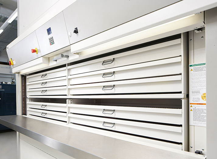 A visbilidade total é um dos pontos fortes do Hänel Rotomat: cada movimento é registado e controlado através da ligação com sistemas ERP e WMS. Esta integração digital responde às exigências de setor altamente regulados, como o hospitalar e farmacêutico e transformador.